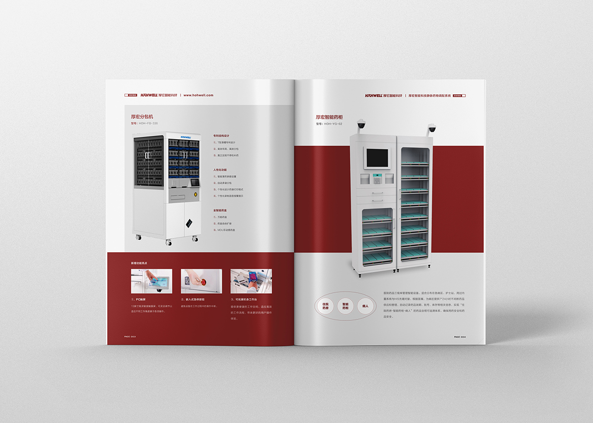 品牌介紹:厚宏智能科技作為一家智慧一體化設備及解決方案供應商, 主要專注與醫療服務體系相關自動化設備領域,涵蓋智慧藥房服務管理工作站、智慧檢驗前端服務管理工作站、智慧靜配中心服務管理工作站、智慧住院區服務管理工作站、智慧手術室服務管理工作站,配備各系統數據信息分析服務功能,為醫療機構人員提供管理和決策信息,構建智慧一體化的醫療機構服務體系,12年宣傳冊設計沉淀,極地視覺值得信賴?商峁┓⻊:醫療企業宣傳、醫院畫冊設計、醫療畫冊制作、醫療產品手冊設計。